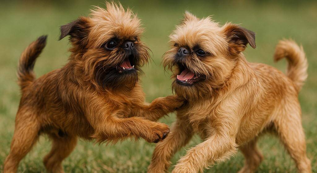 The Belgian Griffon (often grouped with the Brussels Griffon) is a small, intelligent, and affectionate toy breed, weighing 8โ10 lbs and living 12โ15 years. Known for their "human-like" faces, whiskers, and wire or smooth coats, these sensitive companions are energetic, alert, and prone to "Velcro" behavior, preferring to be with their owners constantly. The Griffon is an intelligent cheerful dog with a terrier-like disposition. With lots of personality, it makes a fine companion dog and is good with other dogs and cats. Affectionate, charming, lively and curious, they love everyone. The Griffon cannot live outside in a kennel. If you feed them table scraps, they may become greedy or picky eaters. May be difficult to housebreak. They make good watchdogs and can be taught to perform tricks.