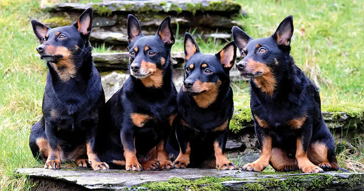 The Lancashire Heeler is a small, intelligent, and energetic herding dog originating from England, typically weighing 3โ6 kg. Known as a "big dog in a small body," they are loyal family companions, though they require significant daily exercise and mental stimulation. They have a smooth, low-maintenance black/liver and tan coat. Lancashire Heelers can be black. According to the American Kennel Club and other breed standards, the accepted coat colors are black and tan or liver and tan. They typically feature rich tan markings on their cheeks, muzzle, chest, and legs.