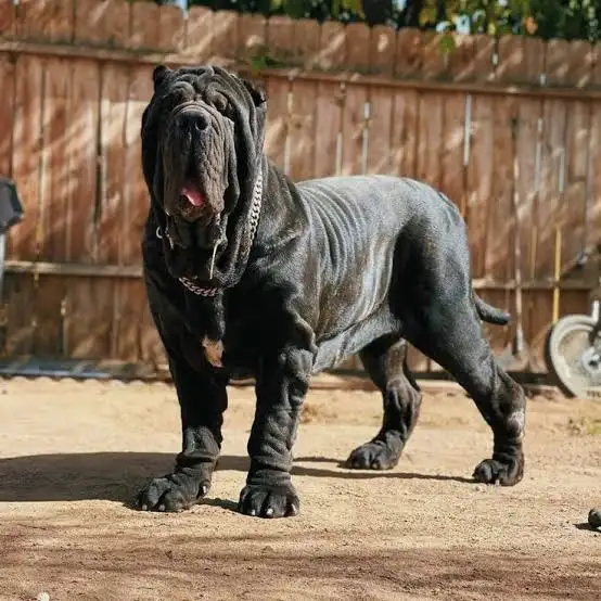 Mastino Napoletano (Neapolitan Mastiff) is a brachycephalic dog breed. The term "Mastino" refers to this specific breed, which is known for its large size, wrinkled appearance, and brachycephalic short-snouted head. Other mastiff types, such as the Dogue de Bordeaux and Bullmastiff, are also brachycephalic. The Neapolitan Mastiff or Mastino Napoletano is an Italian breed of large dog of mastiff type. It was recognised as a breed by the Ente Nazionale della Cinofilia Italiana in 1949, and accepted by the Fรฉdรฉration Cynologique Internationale in 1956. The Neapolitan mastiff is a giant working breed from Italy with wrinkly skin, short fur, a muscular build, and long, floppy jowls that droop from their face. Though their size can be intimidating, the Neapolitan mastiff is a gentle giant that makes an excellent large family dog. These dogs are just as protective as they are loving toward their owners, and they are also low-maintenance and easygoing companions. If you are looking for a best friend that can also help keep you safe, the Neapolitan mastiff is up for the job. Along with its unique appearance, this breed makes a great companion. Neapolitan mastiffs love their families unconditionally, but they can be wary of strangers, making them great guard dogs to protect their homes from intruders. Their fearless and protective attitude is sure to frighten any unwanted visitors. When it comes to spending time with their owners, Neapolitan mastiffs have especially affectionate personalities. They're not usually a playful breed, but your mastiff will be happy to curl up inside or go for a walk a few times each day.
