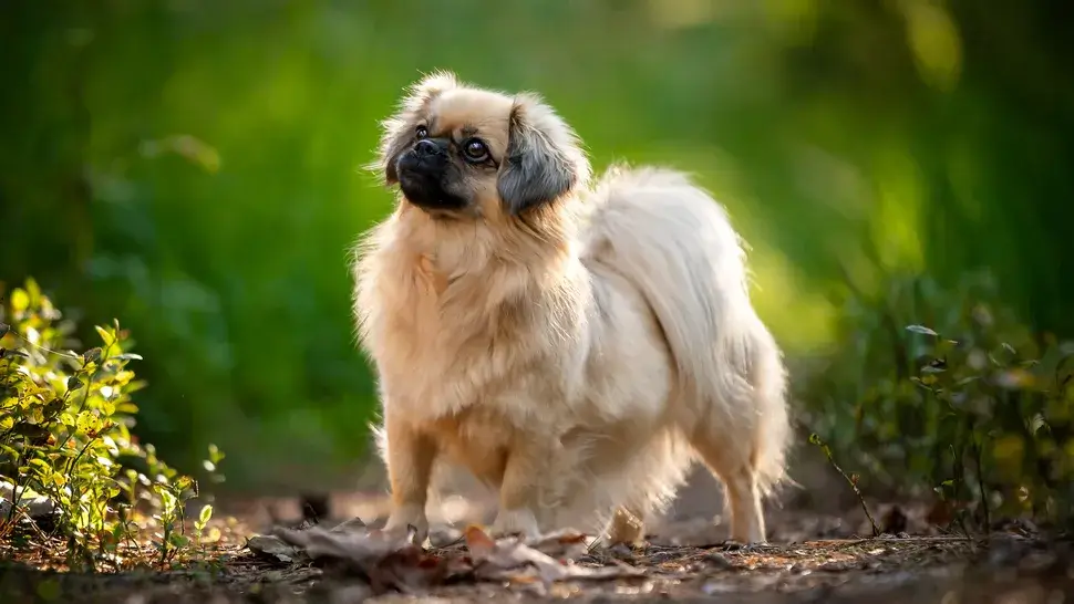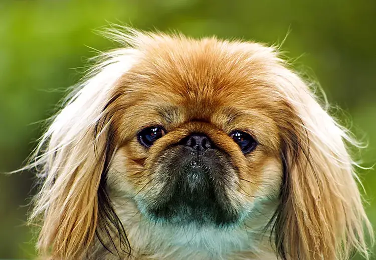 The Pekingese is a breed of toy dog, originating in China. The breed was favored by royalty of the Chinese Imperial court as a companion dog, and its name refers to the city of Beijing where the Forbidden City is located. The breed has several characteristics and health issues related to its unique appearance. A compact toy dog that was prized as a companion in the palaces of ancient China. They have a cheerful rolling gait, and while diminutive, they are true canine aristocrats with all the confidence of the emperors who owned them. Prone to snoring and noisy breathing, the Pekingese has an extremely brachycephalic head shape, with almost no muzzle at all and large prominent eyes, that are likely to suffer eye problems and irritation.