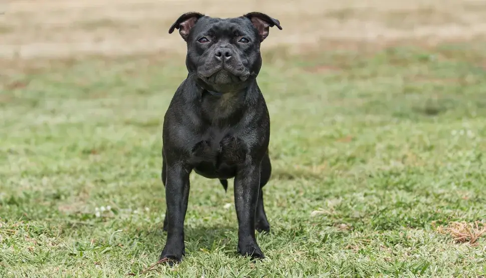 These sturdy yet agile terriers are courageous and tenacious and make a wonderfully playful companion with a particular affinity for kids. They were once the stars of British fighting pits but nowadays tend to have sweet natures as patient, willing pets. A mildly affected brachycephalic breed, Staffies have wide faces and relatively short snouts but there is considerable variation in the degree and likelihood of breathing difficulties. They might be less heat tolerant than the average dog, but they tend to be at a much lower risk than many other brachycephalic breeds of suffering BOAS. The Staffordshire bull terrier, also called the Stafford, Staffy, or Staffie, is a medium-sized dog of somewhat short stature with a muscular, athletic body. Contrary to its tough appearance, the Stafford is a gentle, loyal, and highly affectionate dog breed that was recognized by the American Kennel Club in the 1970s. Praised for its "nanny-like" instincts, the Stafford gets along remarkably well with children when properly trained and socialized. However, because of this breed's strong prey drive and dog-fighting ancestry, use caution around other pets.