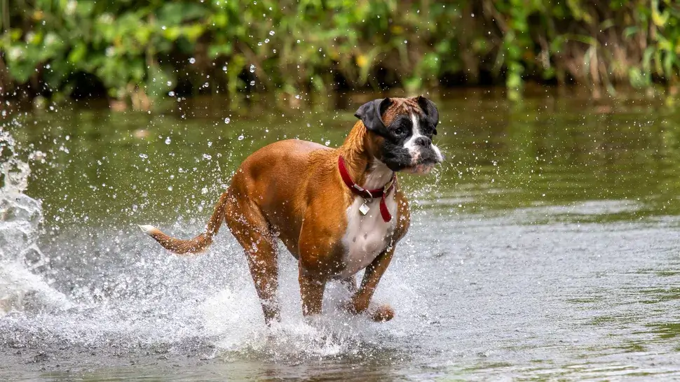 A German breed with a patient and protective nature, which is known for being a super playmate for kids. They are gentle and loving, despite their muscular power but these aren't the most important things to know about boxers. You should know that the distinctive short and wide head of the boxer, with its square muzzle and snub nose, is likely to predispose the breed to snoring and breathing problems. However, boxers are considered moderately rather than severely brachycephalic. In addition to being known for their energy and athleticism, Boxers are often characterized by their playful and affectionate nature. As their name suggests, Boxers are also recognized for their distinctive "boxing" behavior, where they playfully bat at objects or people with their front paws. They require regular exercise and training to keep them mentally and physically stimulated, but they can form strong, lasting bonds with humans.