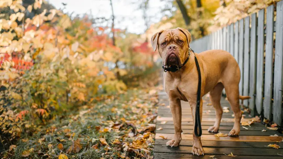 This immensely powerful, ancient French breed of mastiff type features a rich, fawn-colored coat and a propensity for loyal guardianship. Although their enormous heads are the largest in the canine kingdom, they are also short, which means their breathing passages are undersized and flattened โ leading to breathing problems characteristic of brachycephalic breeds. The Dogue de Bordeaux is also known for excessive drooling which can add to the notion that it is struggling to breathe freely. The Dogue de Bordeaux is a large, gentle, and loyal breed that can make a good family dog with proper training and socialization. This breed is prone to certain health issues, including heart disease and hip dysplasia, and requires specific care, particularly in grooming and health monitoring. The breed is known for its protective nature but is generally gentle and does not bark excessively. The Dogue de Bordeaux, also known as the French mastiff, is a large French working dog renowned for its gentle and quiet demeanor, making it an excellent family pet. As one of the oldest and rarest breeds in France, this mastiff is muscular, stocky, and well-balanced, possessing the largest head in the dog kingdom. This breed dates back to the middle ages in France where these dogs were used to hunt wild game. Despite their powerful appearance, the Dogue is notably gentle in demeanor, while their intense loyalty makes them highly effective guard dogs.