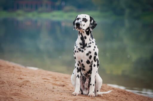 The Dalmatian is a medium-to-large, short-haired dog, historically known as a carriage or "firehouse dog," recognizable by its white coat with black or liver-colored spots. Known for high energy, intelligence, and a loyal, playful temperament, they require significant daily exercise and consistent training. Dalmatians were bred to run under or alongside horse-drawn carriages and therefore have a vast amount of stamina and energy. They do not like to sit around all day with nothing to do. They are playful, happy, easy going and very dedicated. The Dalmatian needs a lot of leadership along with human companionship in order to be happy. They will not do well left out in the yard all day and have been known to dig crater-size holes when done so. The Dalmatian enjoys playing with children, but if they do not receive enough mental and physical exercise they may become high-strung, and too excitable for a small child. This buildup of energy causes their minds to become unstable and they can become timid without enough socialization.