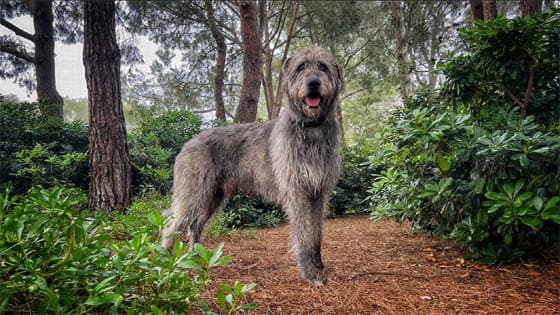 The Irish Wolfhound is the world's tallest dog breed, known as a "gentle giant" with a calm, patient, and loving temperament. Originally bred to hunt wolves, they are affectionate, intelligent, and loyal, making them great family companions, though they need substantial space and moderate daily exercise. They are sensitive, requiring early training, and have a short life expectancy of roughly 6โ9 years. Irish Wolfhounds are sweet-tempered, patient, kind, thoughtful and very intelligent. Their excellent nature can be trusted with children. Willing and eager to please, they are unconditionally loyal to their owner and family. They tend to greet everyone as a friend, so do not count on them being a watchdog, but may be a deterrent simply due to their size. This giant breed can be clumsy and are slow to mature in both body and mind, taking about two years before they are full grown. However, they grow rapidly and high-quality food is essential. While it is important to take a growing pup for daily walks for their mental well-being, hard exercise should not be forced and may be too taxing for this dog's body when it is young. Teach it not to pull on its leash before it gets too strong.