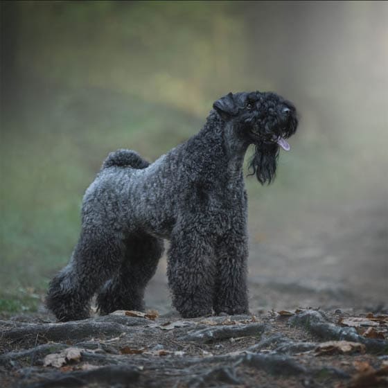 The Kerry Blue Terrier is an intelligent, energetic, and affectionate medium-sized dog from Ireland, known for its distinct, non-shedding blue coat. Originally working dogs, they are versatile, loyal family guardians, but require consistent training, significant daily exercise, and regular grooming. They typically weigh 25โ50 lbs, stand 17โ19 inches tall, and live 12โ15 years. The Kerry Blue Terrier is a smart and affectionate breed that will attach closely to their family, according to the breed club. They enjoy hiking, dock diving, and agility. They have a lot of energy and want to play all the time, so theyโre the best fit for an active and outdoorsy family. When properly introduced to children, most Kerry Blue Terriers are patient with kids. They can be wary of other dogs if not introduced at a young age, so make sure introductions are always done slowly and positively. Understanding a Kerry Blue Terrierโs behavior requires understanding their history. This Irish dog breed was historically bred to work on farms as a ratter, retriever, and herder.