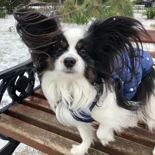 The Papillon is a small, intelligent, and highly active toy breed known for its distinctive large, wing-shaped ears and friendly, confident personality. Originating as a companion for European nobility, they are affectionate, trainable, and generally healthy with a long lifespan of 14โ16 years. The Papillon is sometimes called the butterfly dog, because the ears look like butterfly wings. It is a friendly, intelligent dog that is tougher than it looks, and loves outdoor exercise. It is a playful, lively, amusing, animated and charming little dog. Affectionate, gentle, patient, and proud, it loves to cuddle and enjoys a good romp outdoors. They are steady, obedient and are not yappers. Papillons can be trained to perform small tricks. Good with cats when they are socialized with them. They can also be difficult to housebreak, but are, in general, easy to train otherwise.