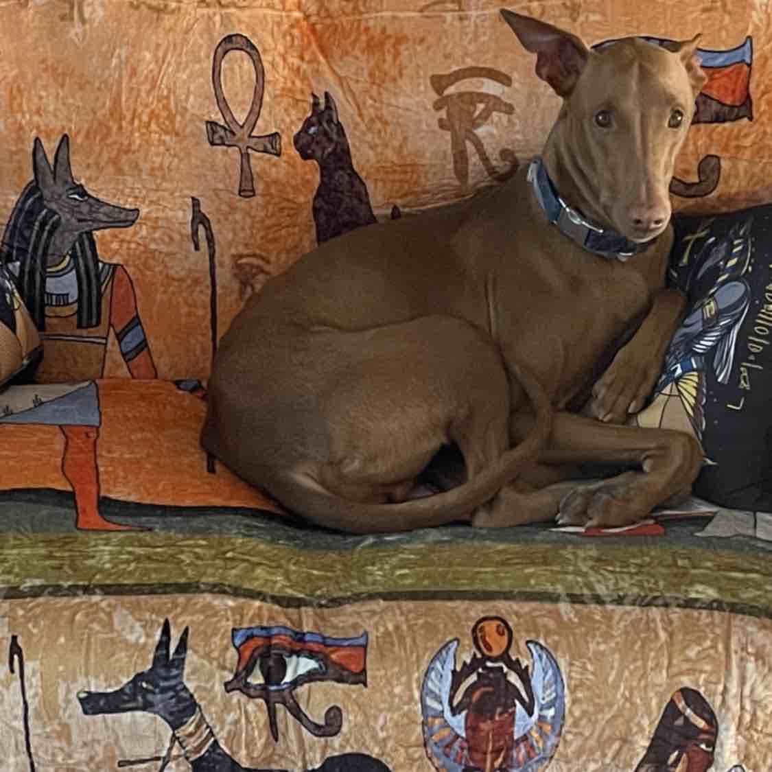 The Pharaoh Hound is an ancient, medium-sized, and athletic sighthound from Malta, known for its tan/chestnut coat, large erect ears, and a unique "blushing" expression when excited. They are affectionate, intelligent, and, while high-energy with a strong prey drive, they are calm, clean, and quiet indoors. The Pharaoh Hound is reasonably independent and a most pleasant companion dog. It is peaceful in the house and loves to play outdoors. It will be calm provided it receives enough exercise. Loyal, brave and loving, this quiet dog is naturally well-behaved and intelligent. It loves children, but is reserved with strangers. A truly unique trait of this breed is when it is excited it "blushes," turning a glowing deep rose on its nose and ears. The Pharaoh Hound should not be too difficult to train. The handler needs to be understanding of the dog's character and to be consistent in approach. It can do well in competitive obedience. Socialize the Pharaoh well at an early age and as the owner of the dog, be sure to stay mentally strong so the dog can feed from your energy to avoid timidity. Nervous humans tend to have nervous dogs because the dog can feel your emotions.