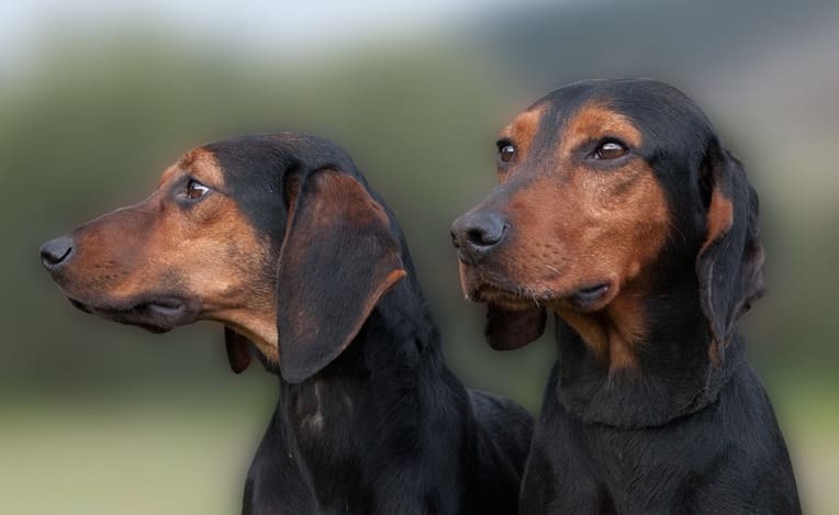 The Austrian Black and Tan Hound (Brandlbracke) is a medium-sized, intelligent, and hardworking scenthound originating from Austria, historically used for hunting in mountainous areas. They possess a smooth black coat with distinct tan markings. Known for being loyal, affectionate, and energetic, they require extensive daily exercise and are best suited for rural environments. The Austrian Black and Tan Hound is the type of dog people think of when they imagine a friendly and good-natured breed. These dogs have a lot of energy that gets them excited to explore the world and meet new people. They can be a bit independent, causing them to have a wild side, but they are playful, loving, and intelligent. At the same time, Austrian Black and Tan Hounds are good with strangers. The breed is not known to be aggressive or wary to people they donโt know. With that being said, the dog will not make a great guard dog because it is not wary against strangers and is not naturally vocal, unless it is lonely.