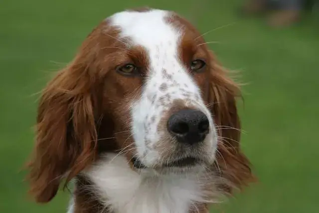 The Irish Red and White Setter is a friendly, energetic, and intelligent gundog originating from Ireland in the 17th century. Known for being affectionate, loyal, and good with children, they require significant daily exercise and thrive in active households. They are distinct from the fully red Irish Setter, possessing a shorter,, sturdier, and feathered white coat with deep red patches. Irish Red and White Setters are energetic, intelligent, affectionate, loving, high-spirited and full of energy. They have no guarding instincts, get along with other pets and are good with children. This breed can be reckless and high-strung if it do not receive the proper amount of mental and physical exercise and may become destructive and hard to manage. Impulsive, with an independent spirit, they are sensitive to the tone of one's voice and will not listen if they sense that they are stronger minded than their owner, however they will also not respond well to harsh discipline. Owners need to be calm, yet possess an air of natural authority, being firm, confident and consistent, giving the dogs clear rules they must follow and sticking to them.