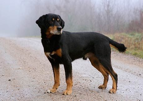 Smaland Hound (Swedish: Smรฅlandsstรถvare) is a breed of dog that originated in Sweden in the 16th century. Thought to be the oldest scent hound breed native to Sweden, it was first recognized by the Swedish Kennel Club in 1921. They are the smallest of the Swedish hound breeds, and have black and tan markings similar to the rottweiler. Internationally, it is recognized by a number of kennel clubs and registries including the Fรฉdรฉration Cynologique Internationale and United Kennel Club. It is considered rare, even in its native Sweden where only around sixty puppies are registered each year. The Smรฅlandsstรถvare has got quite a long history and dates back to the 1600s. He is the smallest of the Swedish hound breeds. This is a scenthound. Hounds similar to the Smรฅlandsstรถvare were bred with European hounds and then brought to Smรฅland and bred with local spitz-type farm dogs to create the foundation stock for the Smรฅlandsstรถvare. The dog was used to hunt but nearly died out in the 20th century, but breeders restored it and the first official standard emerged by the Swedish Kennel Club in 1921. The Smรฅlandsstรถvare is a rare dog breed but it is recognized by the American Rare Breed Association as well as other major kennel clubs, one of which is the Federation Cynologique Internationale as well as the United Kennel Club.