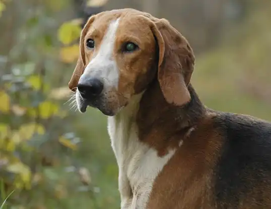 The Chien Franรงais Tricolore (French Tricolour Hound) is a large, athletic, and intelligent pack scenthound originating from France, primarily used for hunting big game. Recognized as a distinct breed in 1957, they possess a tricolour coat (black, tan, and white), long drop ears, and a strong, muscular build, with a 12โ15 year lifespan. The Grand Anglo-Francais is a best-of-both-worlds breed, combining qualities from French and English hounds to create a natural hunter with a keen sense of smell. The Chien Franรงais Tricolore is a large scenthound that was developed in France. They hunt in packs for large game, specializing in deer, and are rarely seen outside their homeland. The Chien Franรงais Tricolore is one of three Chien Franรงais, the other two being the Blanc et Noir and the Blanc et Orange. Although classified as separate breeds they vary little besides coat color. This breed is a hunting dog at heart. Though they can adapt to home life, they are happiest when using their keen noses or hunting in groups. These pups are hardworking and typically get along well with people, kids, and other dogs. Because they are prone to wandering off when following a scent, it's best to keep them on a leash or in an enclosed area when they are not hunting. With a real "pack mentality" and very high exercise demands, it would not be sensible to attempt to house this dog alone in a small home. Without the company of other dogs, they tend to become depressed. While breed members are laid-back enough to be able to come into the home during the evening, it is widely accepted that they should be allowed to work when possible.