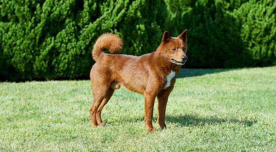 The Shikoku is a rare, medium-sized Japanese spitz breed, known as a primitive hunting dog for boar and deer, with a wolf-like appearance, erect ears, curled tail, and distinctive sesame-colored coat. These energetic, loyal, and intelligent dogs are hardy, agile, and protective but require significant exercise, consistent training, and early socialization due to their strong prey drive and independent nature; they thrive with active owners who understand primitive breeds. The ancient Shikoku dog is what is known as a primitive breed, which means they retain more wild characteristics than other domesticated dogs that have grown accustomed to living with humans over the centuries. Because of their nature, your Shikoku's temperament around others will vary considerably depending on socialization in puppyhood. They are calm, reserved, and loyal to their family, but typically are not suitable for homes with other pets or young children. Although this dog resembles a larger version of the more common Shiba Inu, the Shikoku is generally calmer, less stubborn, more obedient, and more submissive than the Shiba. This breed is best for experienced dog parents, as Shikoku dogs require consistent training and have protective tendencies. Although the Shikoku is intelligent and fairly obedient toward their human, the breed is still primitive. This dog is somewhat willful and independent, so training can be a challenge. Train daily using positive techniques and rewards, and always be a fair and consistent leader.