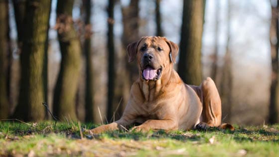 The Boerboel (pronounced BOR-bul) is a breed from South Africa, which is why the dogs are sometimes known as South African Mastiffs. This mastiff breed is athletic and reaches 90 kg in size. Plan on at least one long walk each day for your Boerboel, and do not overlook the importance of building a strong bond through engaging training sessions, since the breed is known for their independent nature. The boerboel is mastiff-type dogs that had arrived in the country with 17th-century European settlers as well as local African dogs. The boerboel was used as a farm guardian, protecting livestock from predators and thieves, and keeping the family safe. Although this massive dog is protective, they are not aggressive toward friendly people and are gentle with respectful children. Massive, stocky, and muscular, boerboels need space, so they are not well-suited to apartments or city life. The breed responds well to positive reinforcement training, but because of their large size and dominant nature, this dog is not for inexperienced dog parents. Consistent and early training and socialization are extremely important. With lots of training and socialization and the right owner, the Boerboel is an intelligent, friendly dog that is known for getting on very well with children. The Boerboelโs name derives from the word "boer" which means "farmer", so it is not difficult to guess what these dog's were originally used for. A giant breed, these pups were originally bred to be guardians and protectors, although nowadays are also known for being pets and companions. They are actually known to be quite lazy and laid-back dogs, despite their size and power!