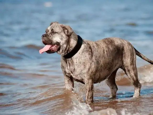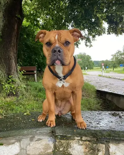 The Olde English Bulldogge is a muscular, medium-sized, athletic dog breed known for being loyal, affectionate, and protective. Developed to recreate the healthier, more functional original bulldog, they are energetic enough for activities like hiking but also content to lounge. They have a short coat, a lifespan of 10โ14 years, and are generally good with children with proper training and socialization. The Olde English bulldogge is a mix between the English bulldog, the American bulldog, and the American pitbull terrier. Some mastiff genes are also involved in the breed. They are a historic dog breed with its roots in the Olde English bulldogges of the past, which were used for sporting events like bull baiting. While these dogs were popular in the past, they began to get phased out as sports like bull-baiting were phased out. While these dogs were gone for a little while, Olde English bulldogges have made a comeback that started in the 1970s. Today, Olde English bulldogge has returned with a mild temperament, less aggressive tendencies, and a people-pleasing personality. Olde English Bulldogges might be intimidating, but they are quite friendly. In fact, they are affectionate, outgoing, and playful. Plus, they are not standoffish to strangers or other animals if they have some socialization or training. Aside from being friendly, they are also bold and go to great lengths to please their owners. This makes olde English bulldogges easy to train for service dog work and even some agility training. Olde English bulldogges are great with children, but socialization training is key. As long as you socialize them from a young age, you wonโt have to worry about issues between an Olde English bulldogge and your children. In most cases, even without training, theyโre loyal and protective over children. Olde English bulldogges are good with most animals. They wonโt harm your cat and love to play with other dogs. Olde English bulldogges are also open to interacting playfully with dogs theyโre unfamiliar with , so you can have fun at the dog park or in public places like breweries. Olde English bulldogges are not like the Olde English bulldogges of the 18th century who used to participate in fighting sports. This breed was created to resemble the appearance of the Olde English bulldogge, but without aggression. Therefore, theyโre loving and caring dogs that love to spend time with their family and other animals.