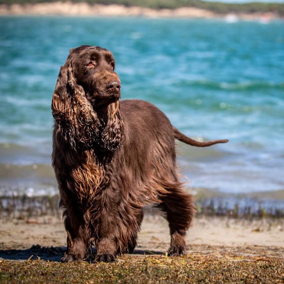 The Boykin Spaniel is a medium-sized, energetic, and loyal sporting dog from South Carolina, known for its love of water and hunting, but also as a friendly family pet that's eager to please, loves kids and other dogs, and needs plenty of exercise to prevent boredom. They have distinctive liver-brown coats, floppy ears, and are highly trainable, making them adaptable companions for active owners who enjoy outdoor activities like hiking and swimming. Another spaniel native to the United States, the Boykin is the official dog of South Carolina, and has a rich history in the state. These are bird dogs, known for their brown coat, athletic physique, and webbed-toes. They were developed to retrieve fowl from swamps, lakes, and rivers. If you live near a lake or the ocean, this water-loving breed could be a good match. The Boykin is known for being gentle, friendly, and enthusiastic. They respond well to positive training methods, tend to be very sociable, and love being active. If they get enough exercise and enrichment, they're usually mellow and snuggly.