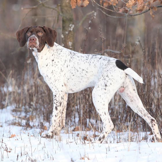 The German Shorthaired Pointer (GSP) is an energetic, intelligent, and versatile hunting dog from Germany known for its endurance and affectionate nature. They are medium-sized, typically weighing 45โ70 pounds and standing 21โ25 inches tall, with a short, dense coat in liver or liver and white patterns. GSPs require significant daily exercise (over 40 minutes) to prevent boredom and destructive behavior and are well-suited for active families and hunting. If you like the sometimes dense packing of Dalmatian spots, you might like some varieties of similarly athletic German Shorthaired Pointers. These robust hunting dogs come in varieties of liver (a shade of brown) ticked with white markings, giving their coat a densely dappled appearance. These white markings help the GSP virtually disappear into the shadows and among trees and brush, making them stealthy and effective hunting companions. One of the most energetic breeds, the German Shorthaired Pointer is a hunting dog by nature. Protective, clever, eager and willing to please, it is very fond of its human family. Happy-go-lucky, it loves nothing more than to engage in some type of constructive activity with its owners such as a long walk, jog, hike, hunt, or a game of Frisbee. This breed is not suited to life in a kennel. Faithful, spirited and friendly, it likes and mixes well with children. Dominancy and energy levels vary slightly from puppy to puppy even within the same litter, however those bred for working in high-performance field competitions usually require more activity than the average Shorthair, but are all still very high energy dogs who need a lot of daily exercise. Best suited for an active family. When they lack in exercise they can become high strung and frustrated. The GSP will not listen if it senses that it is stronger minded than its owner, however it will also not respond well to harsh discipline. The GSP needs an owner who displays a natural air of authority providing firm, but calm, confident and consistent with rules it must be made to follow. The GSP crave order and need structure in its life. If this breed lacks in either exercise or leadership it can develop separation anxiety and possibly become destructive and nervous. Well adjusted, stable minded GSPs who receive enough mental and physical activity along with a balance of consistent leadership will get along with other dogs and cats. This breed likes to bark and can be reserved with strangers. Socialize well. They will be in their glory if they are actually used for what they were bred for and taken on hunting trips. German shorthaired pointers (GSPs) are versatile sporting dogs that excel in hunting and make excellent companions for active families. These dogs require significant exercise and mental stimulation; otherwise, their high energy levels can lead to destructive behavior.
