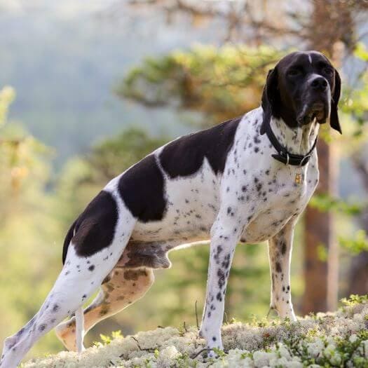 The Pointer, also called the English Pointer, was used for several hundred years to โpointโ birds and small game such as rabbits. This remarkable dog breed is a versatile field dog and an exceptional family dog breed. The English Pointer is a highly energetic, athletic breed known for its pointing ability, developed in England as a hunting dog. These dogs need significant daily exercise and mental stimulation to stay happy and well-behaved. They are intelligent, affectionate, and generally friendly with families and other pets, but they do not tolerate being alone well and are moderately independent outdoors. English Pointers are extremely high energy, and very enthusiastic hunters. With enough exercise they will be calm in the home. Intelligent, devoted, loyal and clean, they are patient, friendly, affectionate, love children and are a true friend to the family. They adapt well to new situations. Can be reserved with strangers. Socialize well at an early age and as the owner of the dog, be sure to stay mentally strong so the dog can feed from your energy to avoid timidity. Nervous humans tend to have nervous dogs because the dog can feel your emotions. If you do not provide enough mental and/or physical exercise they will become high-strung and distractible and can become neurotic and destructive. If they sense their owners are not as strong-minded as themselves they will become a bit willful as they will believe they need to be the leader of the relationship. It will bark at suspicious noises, but it is not a watchdog. Hunting instincts develop early. Puppies will start to display pointing behavior as young as 8 weeks old. These dogs are generally good with other pets and are not usually dog-aggressive. Pointer dogs tend to have a loyal and eager-to-please personality. Theyโre generally friendly and adaptable. A high energy level also shapes their temperament, and they prefer an active lifestyle. Pointers tend to do well with other dogs, especially when socialized from a young age. They even are typically good about meeting strangers. But they might view smaller household pets as prey. With an energetic and fun-loving disposition, Pointers thrive in active households where they become devoted family members. Apartment dwellers beware, though. This highly active breed needs plenty of space to play and lots of daily exercise to keep their energy in check. Otherwise, they may find their own fun by acting out with unwanted behaviors. Devoted and even-tempered, the Pointer is described as a congenial companion. He has a competitive spirit and an independent streak, but heโs also fun-loving and mischievous. An excellent watchdog, he is protective of his property and will sound the alarm at anything out of the ordinary. In the field, he is hard-driving and courageous. In obedience trials he is willing and exuberant, performing the "come" command, known as the recall in the ring - as if shot out of a cannon. Pointers need early socialization and training.