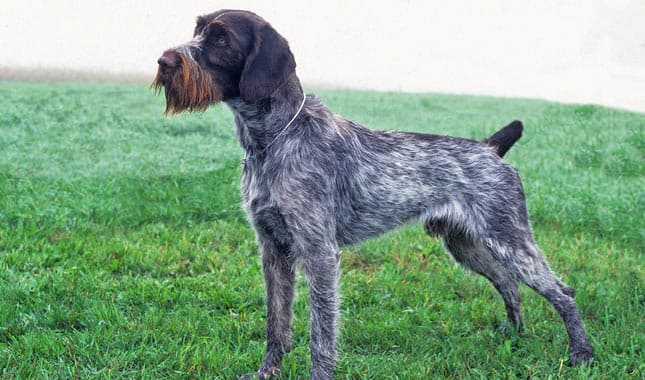 The Deutsch Drahthaar is a versatile dog breed known for its excellent hunting and tracking abilities. With its robust, wiry coat in brown and white spots, it is ideal for bird and big game hunting. The German Wirehair is intelligent, persistent and needs plenty of exercise as well as mental challenges to remain a happy and loyal companion. The German Wirehaired Pointer is an intelligent, energetic, and versatile hunting dog known for its distinctive weather-resistant, wire-like coat and sturdy build. These dogs are loyal and affectionate family companions that need significant exercise and mental stimulation to prevent restlessness and destructive behaviors. They are friendly with children and other pets if properly socialized but can be standoffish with strangers and have a strong prey drive. The German Wirehaired Pointer is one of the most popular hunting dog breeds. As a powerful all-rounder, it can be used in the field, forest and water. Despite its independent character, it is very family-oriented. You should always be aware that the Deutsch Drahthaar is a hunting dog. It is used for single hunting in the field and in the water. In between, he guards his family's house and yard. He is first and foremost a working dog. With the right amount of exercise, however, it can also be an excellent family dog that is good with children. Even if the German Wirehair is not used for hunting, it should be trained regularly. Tracking work and maintrailing are just the thing for him. Can you train a dog consistently and have empathy? Then it is a good companion dog for long walks. If you have built up a good, trusting bond with your dog, he is also very easy to lead off the lead. The German Wirehaired Pointer has a lot of energy that it wants to live out. If this energy is directed in the right direction, it is a balanced dog that reacts neither shyly nor aggressively. Hecticness is completely alien to him. He gets along well with other dogs. Outside of working hours, the dog needs close family contact. The breed is not suitable for keeping in a kennel. It is an independent dog that thinks for itself and is easy to handle without showing signs of submissiveness.