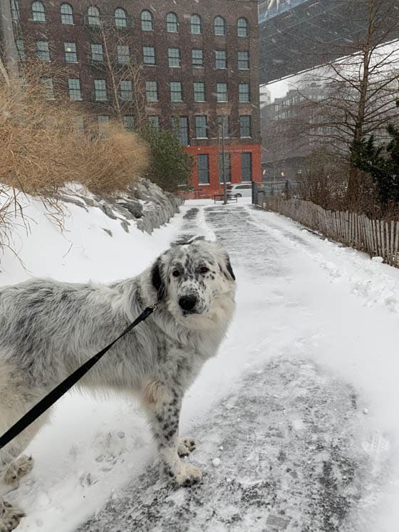 Roan Coats - A roan pattern is when the coat contains multiple small to medium-sized splotches of color on the dog's body and sometimes face. The roan color is always a darker color than the base coat and the "splotches" normally are uneven in size and shape.