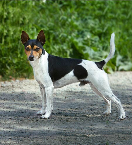 The Rat Terrier is a small to medium-sized American dog breed known for being energetic, intelligent, and friendly. They were originally bred as a versatile farm dog for hunting vermin but are now popular family companions. Key characteristics include a short, smooth coat that can be in many color combinations, two sizes (miniature and standard), and a lifespan of 12 to 18 years. The Rat Terrier is an intelligent, alert and loving dog. It is very inquisitive and lively. This affectionate dog makes an excellent companion for those who will enjoy an energetic dog. They are good with children, especially if they are raised with them from puppyhood. They are, for the most part, friendly with strangers. Rat Terriers make good watchdogs. These dogs are quick, very playful and are not yappers. The temperament of these dogs is pure terrier. The lively, feisty, fearless nature can be found in the best of terriers. They are eager to please and respond and pick training up faster than most dogs. The Rat Terrier is a very well-mannered, well-rounded dog. It is easy to train, very eager to learn and to please its owner. They love to go with you and to do what you do. They are also very good swimmers, not bashful or afraid and have no problem with the water. They make good farm dogs as well as excellent family dogs for pets and companionship. This hardy dog is used for hunting expeditions as well as terrier work. Adult dogs can adjust easily into families with or without children. Bred to hunt rats, as their name suggests, Rat Terriers are bright and nimble. While they can still certainly excel in the hunt, this is a very family-oriented dog that wants to join in with whatever his people happen to be doing. Rat Terriers are incredible hunters, containing the intelligence and sense of humor that you'd expect in a terrier. They also have a strong desire to be with their people; this is not a breed that enjoys being left alone for long periods. Rat Terriers are persistent and tenacious when it comes to problem-solving and getting a job done. Kallas loves this about the breed, but she admits it can also be downright difficult for inexperienced dog parents who are not prepared to set firm and consistent rules. Ratties need plenty of physical and mental stimulation, remember, these are bright pups with a curious nature, so it is on you to keep them out of trouble. If a Rat Terrier is introduced to new people (including children), other dogs, and cats early on, they will likely get along with everyone.