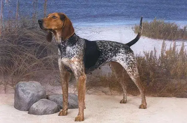 The Bluetick Coonhound is a medium-to-large, muscular scent hound from the United States, known for its distinctive mottled blue coat and high energy. They are affectionate with family but have a strong prey drive and can be vocal, requiring consistent training and lots of exercise to prevent boredom and destructive behavior. Potential owners should be aware of their need for a securely fenced area or leash walks due to their tendency to follow scents, and their medium-to-high shedding and potential for a "houndy" smell. The bluetick coonhound is a medium-large hound dog breed native to the United States that sports a trademark ticked pattern on a short, smooth coat. These dogs generally have a friendly, sweet, and loyal disposition. They are used both for hunting and companionship. Above all, this breed belongs in an active home where there is plenty of access to explore the outdoors. The fast and muscular Bluetick Coonhound dog breed stands out for their striking coat. They have a pleasantly pleading expression and a big bawl mouth, which means they have a long, drawn-out bark. Although they are primarily hunters, Blueticks can be fine housedogs and love their people. These dogs are highly sensitive and affectionate. With proper socialization training, they can even get along with children in the home. However, due to their high energy levels and exercise needs, they are not ideal apartment pets, which is something to consider if you want a Bluetick Coonhound puppy. They need to stay active with plenty of walks, playtime, and room to roam. Families with large homes would be wise to fence in their yards, as these dogs may chase any critters who wander by! Bluetick Coonhounds are known for their distinctive personality traits that make them both excellent hunting partners and cherished family pets. These dogs are typically characterized by their friendly and affectionate nature. They are often described as loyal and devoted to their human families, forming strong bonds with their owners. Blueticks are also highly energetic and spirited, requiring ample exercise and mental stimulation to stay happy and content. Their curious and adventurous spirit makes them natural explorers, always eager to follow their nose and investigate new scents. The Bluetick Coonhound is a very intelligent dog. Very devoted to its family, it makes a good companion dog. It does well living indoors and plays a fine guardian to his family and home. They are usually best with older children, but can also do well with younger ones. Some can be a bit dog-aggressive if the owner is not a strong leader relaying the message to the dog that is unacceptable behavior. Owners need to be this dogโs firm, confident and consistent pack leader in order to bring out the best in him. Socialize well, preferably while still young, to avoid them from becoming reserved with strangers. The Bluetick is a passionate hunter and should not be trusted with non-canine pets. This breed is extremely alert, attentive, and able to work over difficult terrain in bad weather.