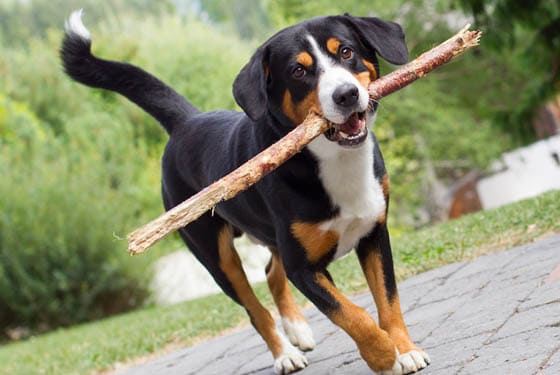 The Appenzeller Sennenhund is an old, but now very rare breed of dog. Even in its own country, it has endangered status, the only one of its kind among Swiss mountain and herding dogs. The Appenzeller Sennenhund is a medium-sized, muscular, tri-color Swiss herding dog known for being lively, intelligent, and energetic. They make excellent watchdogs due to being reserved with strangers and protective of their families. These dogs need significant daily exercise, are prone to barking, and are best suited for active households with space, not apartment living. Charming and affectionate, tough, sober, brave, intelligent and lively, the Appenzell usually gets along well with other dogs and mixes well with livestock and household animals if it has become used to them while still young. They are rather unsure of strangers but greet family and friends effusively. A well brought up Appenzell Mountain Dog that understands his lower place in the human pack is fine with children. Loyal to the whole family, but tends to bond closely with one person, it responds best to firm, but consistent, even-tempered training. Socialize this dog well with all kinds of situations, people and other animals. Appenzells learn quickly, partly because they are so intelligent, but also because they really want to have something to do. This breed enjoys the outdoors, loving freedom and open spaces to run. Agility skill trials and games of catch are suitable sports for this breed. Potential problems arise when owners are not the dogโs firm, confident, consistent pack leaders displaying the proper authority over the dog. It is a natural instinct for a dog to have an order in its pack. The Appenzeller Sennenhund generally has a lively and alert temperament. This dog typically bonds closely with their family, though they can be somewhat wary of strangers. The Appenzeller Sennenhund is an intelligent, calm but never lazy, independent, lively, happy and versatile breed of dog. It is basically a working dog, as mentioned above. It was originally used for herding cattle and house herding, and this still shows in its character today. He is an active, very energetic breed, excels in a wide variety of sports and enjoys playing with his owner. He is intelligent, teachable and demands to be challenged.