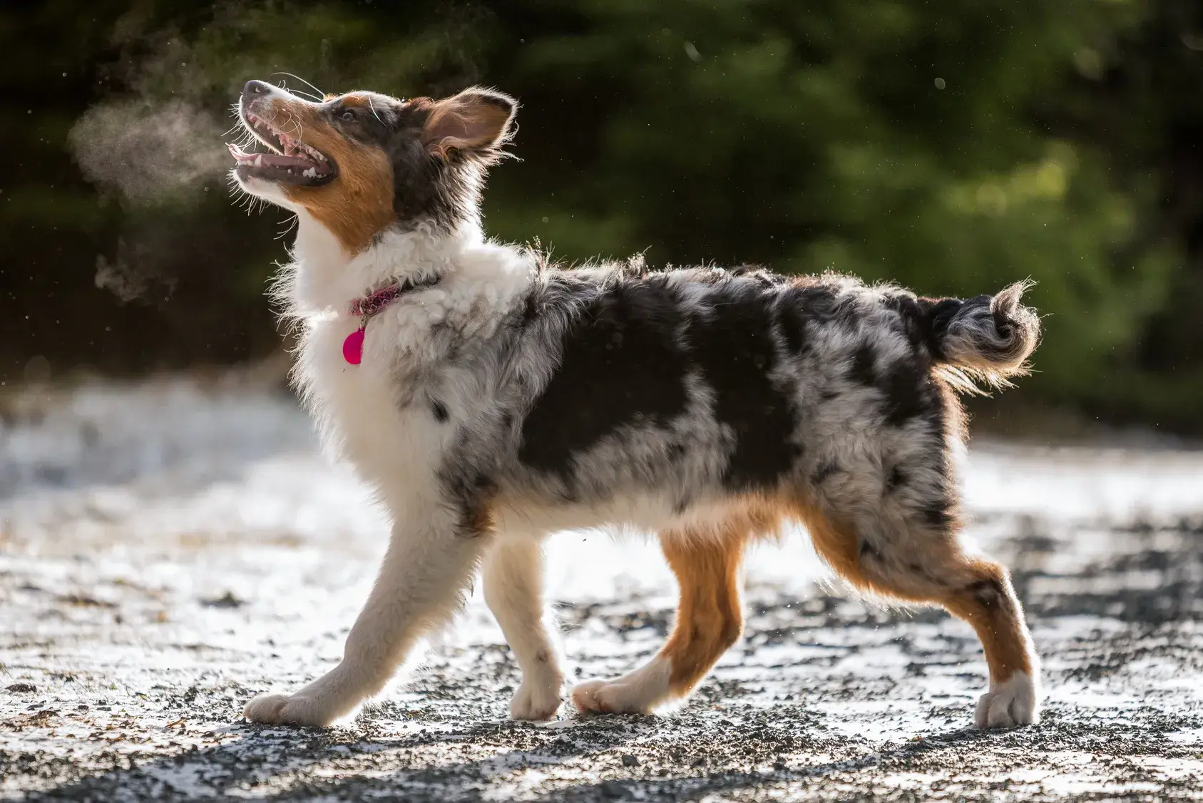 The Australian Shepherd, or "Aussie," is an intelligent, energetic, and trainable herding dog developed in the United States, not Australia. They are medium-sized dogs known for their beautiful, weather-resistant double coat in various colors like blue merle, black, red, and red merle. The Australian Shepherd sports a patchwork of black, blue, and red across a luxurious double-layer medium-length coat, to go along with a set of striking blue eyes. With plenty of energy, a playful nature, and affection to spare, this beautiful spotted dog will be right at home with anyone ready to match its enthusiasm. Their high energy levels and intelligence mean they need significant daily exercise and mental stimulation to prevent behavioral issues. Australian Shepherds are easy-going, remaining puppy-like even in their adult years. This courageous dog makes a good watchdog for the home. Aussies are excellent with children, even with an active child, as they love to play. They are devoted, loyal friends and guardians, for they are naturally protective. Affectionate, very lively, agile and attentive - they are eager to please, with a sixth sense about what the owner wants. Australian Shepherds are highly intelligent and easy to train. Though aggressive when at work with livestock, the Aussie is gentle with human friends. Australian Shepherds are not the kind of dog to lie around the living room all day or live happily in the backyard with only a 15-minute walk. They need much more exercise than that and something to occupy their mind daily or they will become bored, leading to serious behavior problems. Without enough mental and physical exercise or a lack of a true pack leader, they can become nervous and destructive if left alone. Socialize well to prevent them from becoming suspicious of strangers. Working lines may be too energetic for people who only have a moderately active lifestyle. Some like to nip people's heels in an attempt to herd them, and this behavior needs to be corrected, teaching the dog that humans are not to be herded. The Aussie is a quiet worker. This breed is not usually dog aggressive. Australian Shepherds are highly energetic and intelligent dogs, requiring ample mental and physical stimulation. They were developed in the United States with ancestors from Europe and are well-suited for herding, dog sports, and other work. Australian shepherd dogs tend to have an exuberant temperament. They are high-energy dogs with the intelligence to match, so they need lots of mental stimulation and physical activity. The good news is most Aussies have very trainable personalities and are eager to please. Aussies have high exercise requirements and need to be mentally stimulated, so they arenโt the right choice if you donโt have the time to give them the attention and active lifestyle they need.