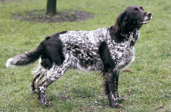 The Small Mรผnsterlรคnder is a versatile, intelligent, and energetic hunting dog that is also a friendly and affectionate family pet. They are medium-sized, elegant dogs with medium-length, straight or wavy, feathered coats, typically white with brown patches. These dogs have high exercise needs and a strong prey drive, requiring an active family and regular mental and physical stimulation to stay happy and well-behaved. The Small Mรผnsterlรคnder is a medium-sized hunting dog with an affinity for water and can swim, point, retrieve, track, and even flush out small game. Outside of their favorable hunting qualities, they also make affectionate family dogs and are highly trainable. In their native Germany, they are known as the Kleiner Mรผnsterlรคnder. The Small Mรผnsterlรคnder is an active and intelligent breed. They make great family dogs or hunting companions but regardless of their role, they need a way to exert their energy. They are highly trainable and love water, so they'll probably enjoy dock diving, obedience trials, agility, and other activities. Equally adaptable as a hunting dog or family companion, the Small Munsterlander is bright, willing to learn and quick to obey. The SMs versatile and cooperative nature provides for a reliable foundation for all types of hunting. It is well suited for a variety of game, including the tracking of big game. SMs are adept at adjusting their search pattern relative to the cover conditions at hand, performing well outside of gun range in open country and reducing their range in dense cover. Under all circumstances, they remain responsive to the handler. SMs excel as bird finders before and after the shot due to their excellent noses. Many SMs point with intensity from early puppyhood, and many also honor naturally. Given their passion for retrieving, steadiness needs to be encouraged through training. Many SMs have voice on trail or scent when tracking game, which is a desirable trait especially in Europe. The hunter can hear the varied/different intonation of the dogโs voice and know what type of game it is tracking. Small Munsterlanders are used for hunting but in the off season they can also be used for agility, obedience, retrieving and hunting tests or trials. The SM is a cooperative dog that seeks to please. But they can also be intense and persistent. When training a Small Munsterlander, it is important to teach them first, and train in different areas and degrees of difficulty with distractions before trying to test or proof the dog. When training your SM it is important to be consistent and not overly repetitious with drills. The stubbornness is a trait that can help make the dog a very persistent hunter. The Small Munsterlander needs regular mental stimulation and adequate exercise. If left alone in a kennel or not trained a SM can be bored and display unwanted behaviors. Small Munsterlanders, like many other German breeds are somewhat slow to mature and often start to show their full potential at about 2.5 years of age.