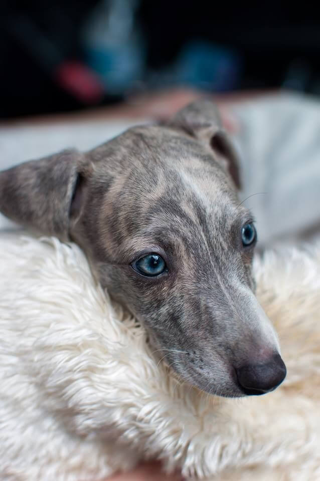 The Whippet is a medium-sized, athletic sighthound from England, known for its elegance, speed, and quiet indoor temperament. Whippets are sleek and slim with a deep chest, long neck, small waist, and graceful legs. Whippets resemble small-scale Greyhounds, as they originated from crossing these large sprinters with smaller terriers. They have a short, smooth coat in many colors and are prone to minimal barking but have a high prey drive. This breed needs regular exercise but is also a comfortable "couch potato" when not running. The Whippet is intelligent, lively, affectionate, sweet and docile. This very devoted companion is quiet and calm in the home. The Whippet should never be roughly trained, for it is extremely sensitive, both physically and mentally. Be sure to introduce plenty of variety during training. The best results will be achieved by including games and running. These dogs are good with children of all ages as long as the children do not roughhouse or tease the dog. Whippets are clean, virtually odor free, easy to care for and easy to travel with. They are good watchdogs and may be reserved with strangers. They will pursue and kill cats and other small animals if given the opportunity, but are good with other dogs. Household cats that they are raised with and have become accustom to will be left alone. They can be used to hunt. The Whippet's sweet personality makes him a fine companion dog. The Whippet is the ultimate sprinter, unsurpassed by any other breed in its ability to accelerate to top speed and to twist and turn with matchless dexterity. Some can be difficult to housebreak while others housebreak quickly. As long as a Whippet's physical and mental needs are met, he will generally be quiet, calm, and happy. The breed is a sighthound, a group of dogs bred to hunt with their speed and eyesight, such as Greyhounds, Borzois, and Salukis. Whippets generally have a goofy, playful personality. Because of their thin skin and coat, Whippets can get cold easily, and generally do not do well in cold or wet weather. Pet parents can dress them in comfortable sweaters, doggy coats, or pajamas to keep them warm. Whippets are the perfect mix of happy and friendly with calm and quiet. They typically get along well with new people and other animals when properly socialized at a young age. But a home with loud, rambunctious little kids might be too much for these sensitive pups. a calm, quieter home is more likely to be suitable for them, but that does not mean they are not a kid-friendly breed. Whippets can be playful and cheery, so as long as the child and dog are introduced slowly, they have a strong likelihood of being good friends. Whippets have been bred for centuries to chase after prey, so they might see a neighborhood squirrel or your neighborโs cat as something to run after. Whippets should always be kept on a leash or inside a fenced yard to keep them and smaller animals safe. All Whippets need to be kept active, both physically and mentally. They donโt need to run around for hours, but they do need to stretch their long legs and explore.