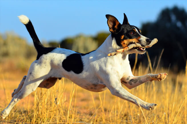 Rat Terriers are a small dog breed that also comes in a miniature variety. Standard Rat Terriers measure thirteen to eighteen inches tall and weigh twelve to thirty-five pounds. Mini Rat Tarriers are ten to thirteen inches tall and weigh about four to six pounds. As their name suggests, Rat Terriers were initially bred to rid farmlands of rats and other vermin. Today, Rat Terriers make for upbeat and loyal house dogs. They have a short, smooth coat that comes in various white, black, brown, tan, and cream patterns. They are an intelligent and curious breed. They typically live from fifteen to eighteen years old. As long as they are socialized from a young age, Rat Terriers are great with other people and make rather contented lap dogs. With their smooth coats and Jack Russell-like markings, these terrier dogs are super cute. The Rat Terrier, a descendant of a possible cross between the Old English White Terrier and a Smooth Fox Terrier, was being brought to the United States by British miners and other immigrants in the late 1800s.Further developed in America by including breeds such as the Manchester Terriers, Whippets or Italian Greyhounds (for speed), and Beagles or other hounds (for hunting ability), the Rat Terrier quickly raised to fame as a farm and hunting dog in the early 1900s. The name American Rat Terrier was said to be coined by Teddy Roosevelt after which his Rat Terrier successfully got rid of the rats in the White House.