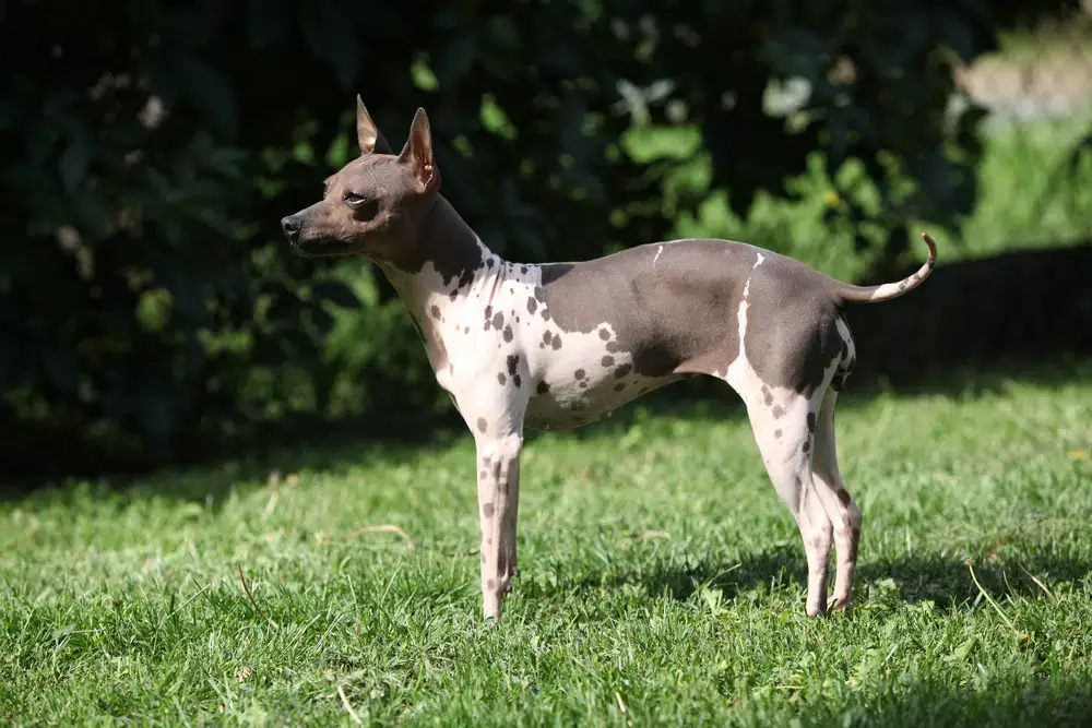The American Hairless Terrier is a unique and relatively rare breed known for its lack of fur. They are lively, affectionate, and intelligent companions that originated from a hairless mutation in a litter of Rat Terriers. The Hairless is recognized for its smooth, soft skin and adaptable, loyal, and charming disposition. While soft and cuddly may not be the first words to come to mind when describing the American Hairless Terrier, they are a playful breed that has a lot of love to give. Unlike some other hairless dog breeds that have tufts of hair here and there, this dog is completely hairless. That makes it extra important to keep their skin clean and protected from the sun. Native to Louisiana, this terrier breed - strangely enough - can be found in coated and hairless varieties. Those with fur are found with a short, soft coat and those without still often have eyebrows and whiskers.