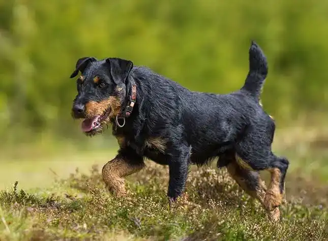 Pronounced as "yahk" terrier and also known as the German hunting terrier, the jagdterrier is a compact, highly sociable, and trainable terrier. Bred to hunt and flush out rabbits, raccoons, foxes, and other wild animals, this breed may not be prevalent in the States, but they have a following with those that value their prey drive. The Jagdterrier is a result of german breeders wanting a hunting breed with abilities that exceed the Black & Tan Terrier. Initial breeding resulted in two coat variations, smooth and rough. But subsequently, the smooth coat was being bred out, leaving what was described as a slape coat. Jagdterriers were bred for hunting quarries such as badgers, foxes, and raccoons. But theyโre also capable of chasing animals off premises, as well as animal tracking. The breed is currently recognized by the Fรฉdรฉration Cynologique Internationale (FCI) within the terrier group, and the American Kennel Club (AKC) within the foundation stock service* group.