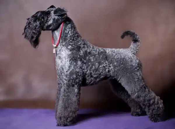 The Kerry Blue Terrier has roots in Ireland, where the breed made ideal farm dogs back in the day. Today, Kerry Blues are still active dogs that enjoy long walks, swimming, and games of fetch with their families. Among the things that make this breed unique is their soft, blue-gray coat. Pet parents typically groom this pup's hair short all over the body, with a long beard on the face for that signature Kerry Blue look. Like many Irish terrier breeds, the Kerry Blue has a farming history. Now, they are known as loving family dogs with a seriously soft, blue-gray curly coat and a signature beard. They have a dense curly coat that requires extra grooming. They are adaptable to various tasks and activities. Intelligent, athletic, and charming, they are loyal and affectionate family members. Donned in a blueish coat, these Terriers are named after the county of Kerry in Ireland. They are of medium stature and have been employed for anything from exterminator to police dog. Kerry Blue Terriers sport a strong prey drive and can be aggressive with other dogs. Be sure to start training early with this breed to ensure a well-behaved, mature dog adult. The Kerry Blue Terr ier is a medium-sized breed known for its soft, curly bluish-gray coat. These dogs are intelligent, courageous and have a strong personality. They are loyal companions and form close bonds with their families. The Kerry Blue Terrier is a versatile dog and can be used in various activities such as dog sports, obedience training and even as a therapy dog. However, this breed requires consistent training and proper socialization to ensure balanced behavior.