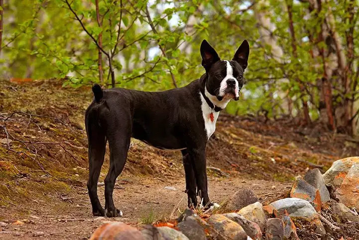Known as the "American gentleman," Boston Terriers are easily identified by their tuxedo coat, perky ears, and stubby snout. They have a sleek, fine coat that does not shed much. They are a small breed - only fifteen to seventeen inches tall and weigh fifteen to twenty-five pounds. Friendly, intelligent, energetic, and athletic, Boston Terriers are great for families or people who enjoy a moderately active lifestyle. Most Boston Terriers are satisfied with one brisk walk a day, while others might require more exercise. Boston Terriers are compact, intelligent, and lively dogs with a distinctive tuxedo-like coat and an expressive face. Friendly, affectionate and adaptable, they are well-suited for various living environments, making them wonderful companions for families, singles and seniors. They enjoy attention and love to be involved in family activities, needing daily interaction to stay content. With their short, smooth, black and white coat that's patterned to resemble a tuxedo jacket, the Boston terrier is undeniably adorable and can easily be described as dapper. Boston terriers typically like to be around their humans as much as possible and are eager to please. They tend to get along with just about everyone, including young children who know not to be too rough, other household dogs, and dog-friendly cats. With their friendly, lively, and active personalities, it's no wonder that the Boston terrier is such a popular breed. Read on to learn all about the delightful Boston terrier.