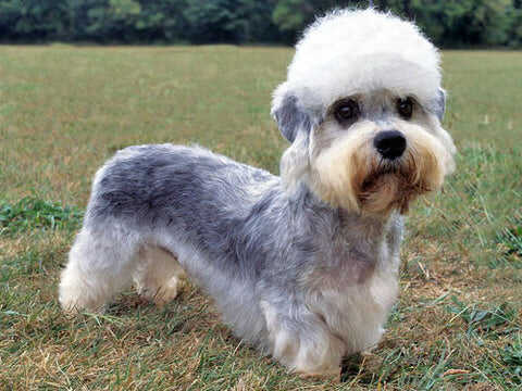 Dandie Dinmont Terriers originated in England and Scotland to hunt badgers and otters. They have a distinctive "top knot" of hair and large eyes. They are affectionate, loyal, and gentle adaptable to many living situations. Dandie Dinmont Terriers are tiny, about eight to eleven inches tall and weigh between eighteen to twenty-four pounds. Their average life expectancy is between twelve to fifteen years. They were initially bred to hunt badgers and otters on the border of England and Scotland. They are known for being affectionate and loyal protectors who bond closely to their humans but may not get along well with other animals. Their rough double coat needs regular grooming to keep them looking in tip-top shape. The Dandie Dinmont Terrier, the only breed with permission from the Duke of Buccleuch (Chief of Clan Scott), to wear the official black and white tartan, owing its breed name to Sir Walter Scott and his famous novel, "Guy Mannering". Possible ancestries traced to a crossing between the Otterhound and the now-extinct Scotch Terrier, the breed was originally bred for hunting small animals and later became known for its otter tracking ability. Dandie Dinmont Terrier was considered a vulnerable native breed by The Kennel Club (KC) in 2016, with sightings of low birth rates in both the United Kingdom and the United States.