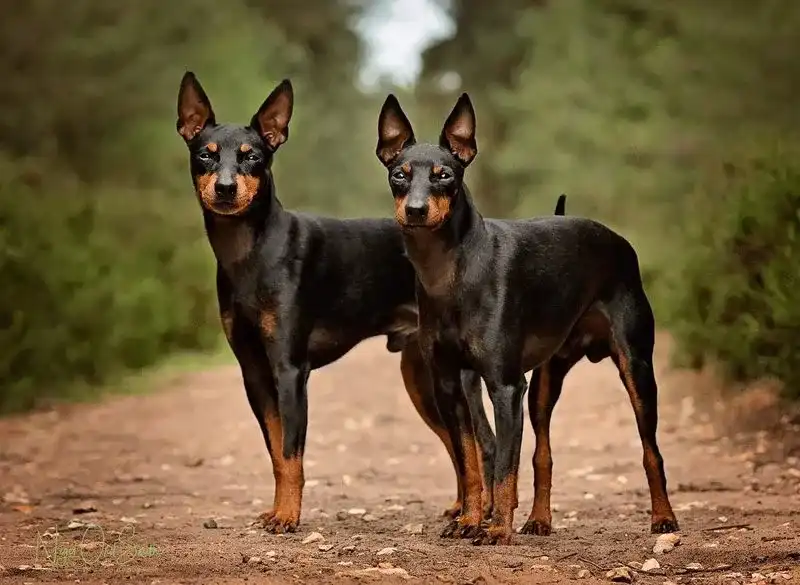 Not to be mistaken for a Miniature Pincher, the Manchester Terrier is a cross-breed of the Black and Tan Terrier, and the โSnap Dogโ (a precursor of the Whippet) is an excellent ratting dog. Bred with longer legs than the Black and Tan Terrier, the Manchester Terrier is faster and its vermin control abilities were most valued in the rat-infested city of Manchester during the 19th century. The Manchester Terrier dog breed was first bred in the English city theyโre named after for ratting. A cross between Black and Tan Terriers and Whippets, these pups sure are fast and excel in canine sports. The Manchester terrier is a toy to small-sized dog breed named after the city of Manchester, England. With a jet-black short coat, chestnut markings, and almond eyes, this dog looks like a small Doberman pinscher. The breed comes in two size varietiesโstandard (22 pounds and under) and toy (12 pounds and under). No matter the size, the athletic and intelligent Manchester terrier is a sleek, graceful dog that blends the sharp instincts and courage of a terrier with the speed and agility of a racing hound.